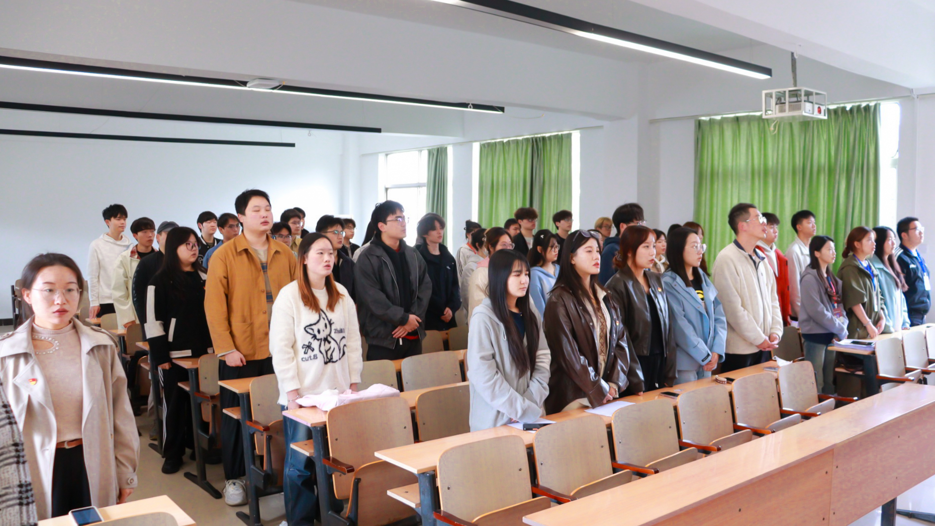 会议第一项,全体起立,奏唱国歌。