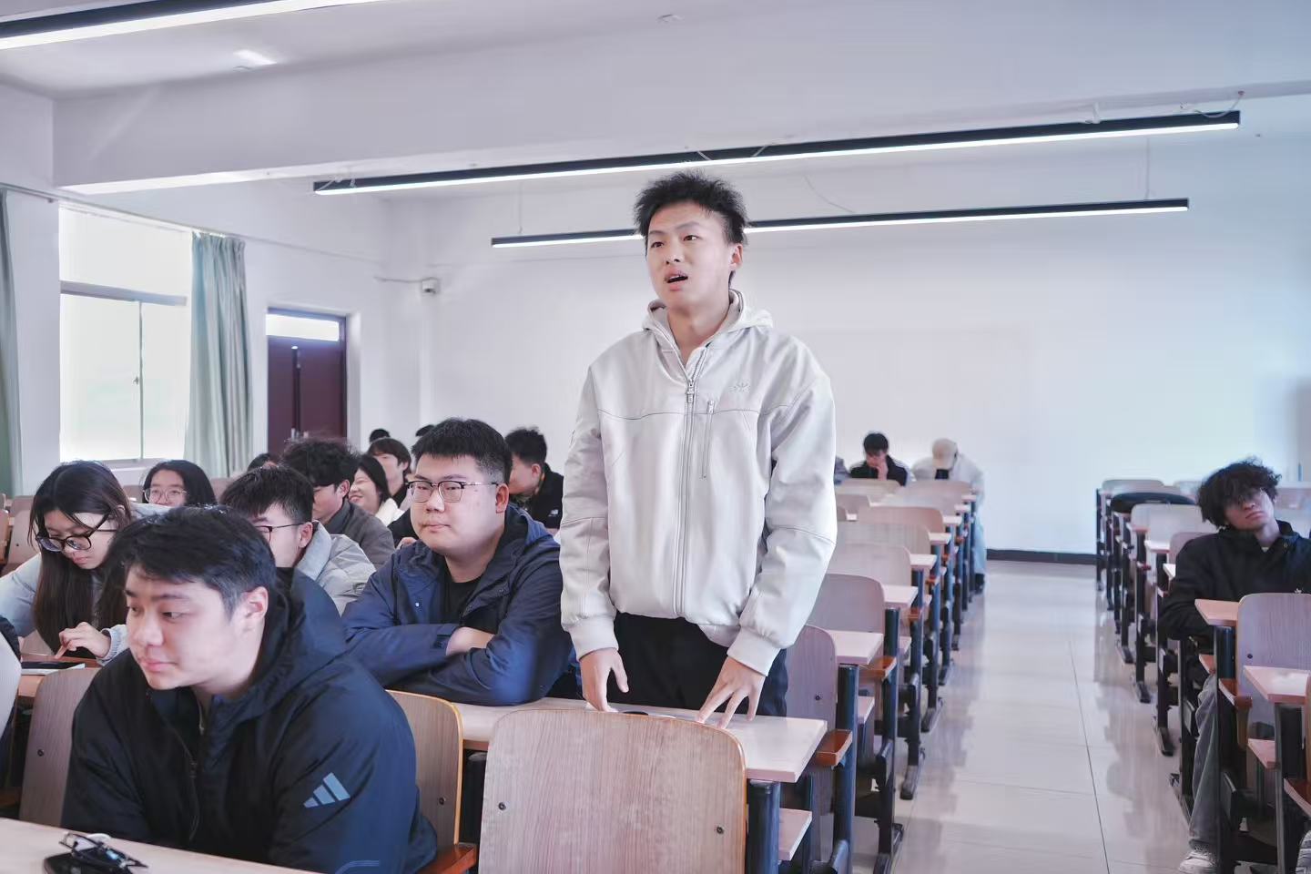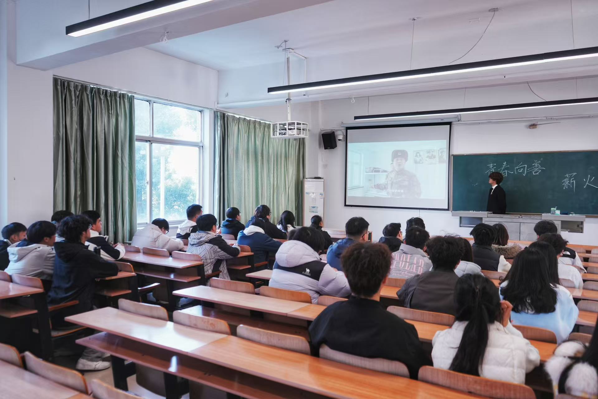 观看结束后,学员们有感而发,纷纷回忆出生活中注意到的温暖时刻。第一位学员说道“我想分享的是雷锋精神不仅仅体现在一个人身上,更体现在一个团队身上。比如张桂梅创办全国第一所免费的女子高中,让更多的女孩走出大山,让数千名女孩能够过上更好的生活,又比如日常生活中的外卖小哥,碰到需要的人总会投出力所能及的帮助。雷锋精神始终在我们身边,我们应该传承雷锋精神,发扬雷锋精神。”第二位学员也难以抑制激动的心情,分享了他觉得最为暖心的一幕:那天刚下过雨,保洁阿姨的小推车难以上坡,在这时有两位同学伸出援手。这一幕让我特别触动。那两个同学没有穿志愿者马甲,没有举着旗帜拍照,他们只是恰好路过,恰好伸手。但正是这种“恰好”,让我看到了雷锋精神最本真的样子——它不是刻意的表演,看到别人困难时,毫不犹豫地搭把手。青春向善,不需要等到某个特殊的时刻。只要我们心存暖意,随时都可以是“雷锋”。