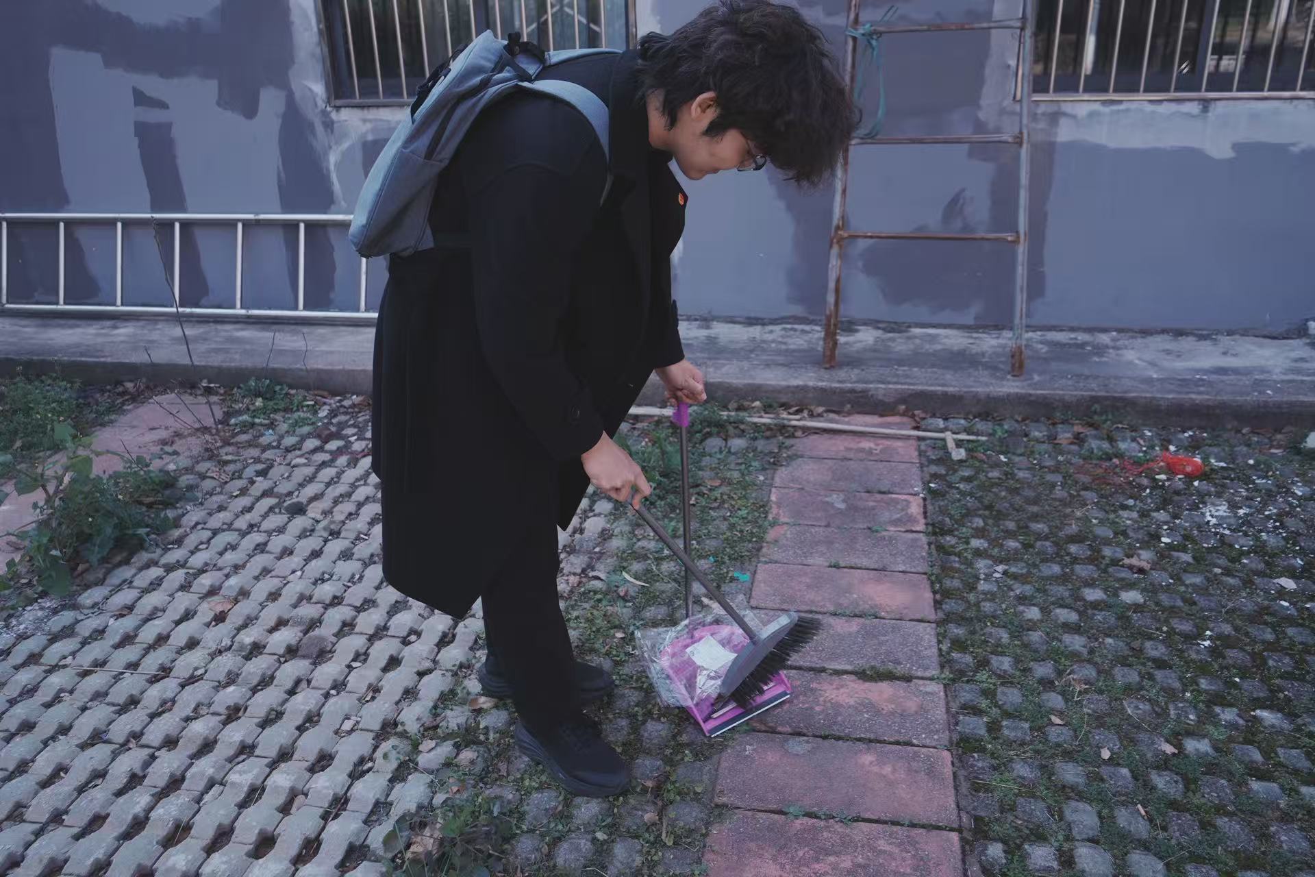 活动第二项,开展户外实践活动,将学习感悟落到实际行动中。学员们拿起扫帚,开始打扫校园里不被人注意到的角落,从小事体会雷锋精神,落实到生活的每一个地方。