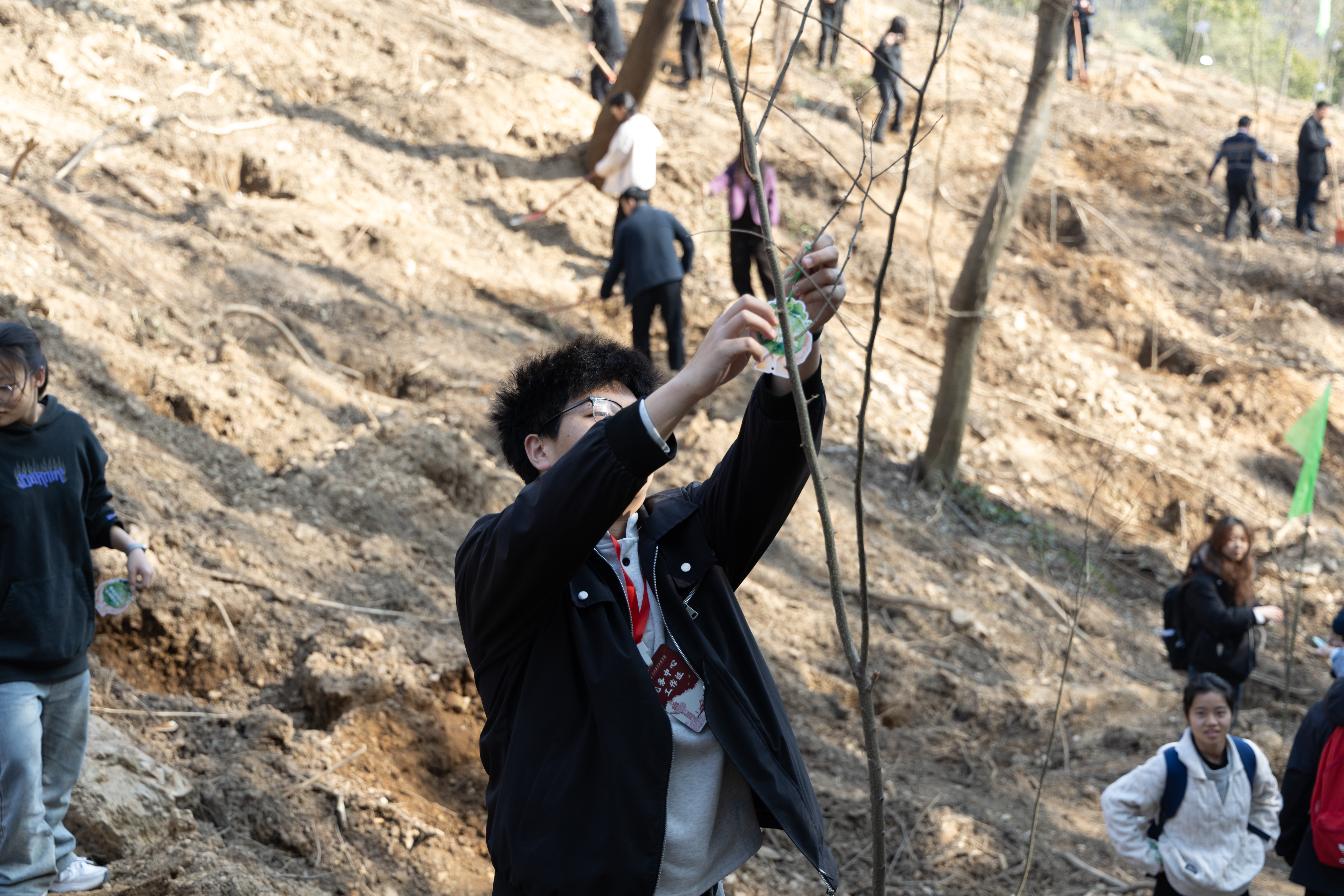 本网讯(通讯员:赵娅多、陈鑫、徐英姿)为深入践行习近平生态文明思想,以青春力量守护绿水青山,充分发挥学生基层党组织战斗堡垒作用和青年党员先锋模范作用,3月13日,999全讯白菜网党务中心联合青马班,组织学生党员、入党积极分子及青马班学员赴江夏区青龙山环山绿道,开展“党旗迎风扬,先锋植新绿”植树节主题实践活动。本次活动从上午9时持续至中午12时,以“党建红”引领“生态绿”,将党员教育与劳动实践深度融合,引导青年学子在服务基层、美化环境中锤炼党性修养,以实际行动为生态文明建设贡献青春力量。